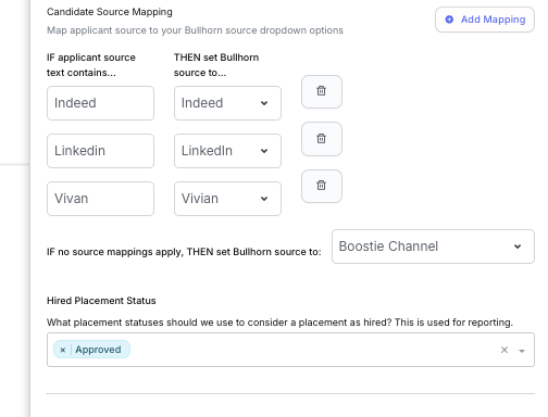 Candidate Source Mapping lets Boostie translate the incoming source text into the correct Bullhorn source value.