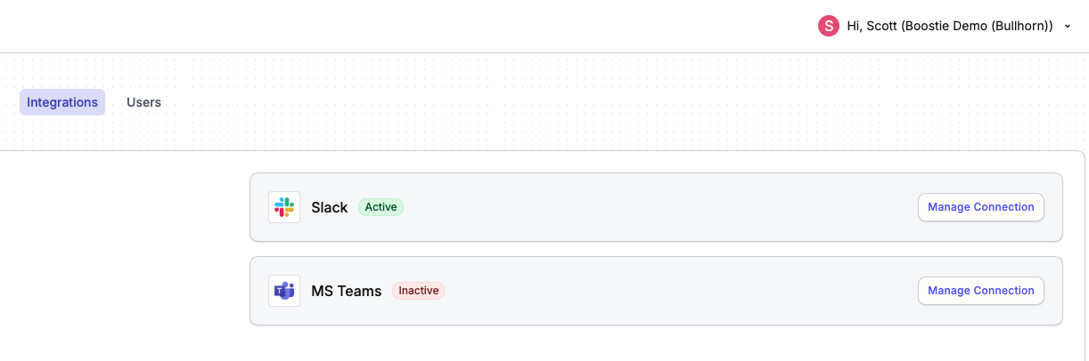 A slide-out will appear on the right. Click Connect Boostie to Slack.