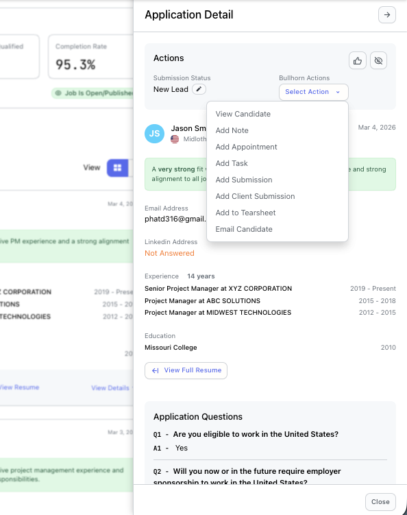 Once you’ve reviewed an applicant in Boostie, you can take immediate action via Bullhorn Actions.