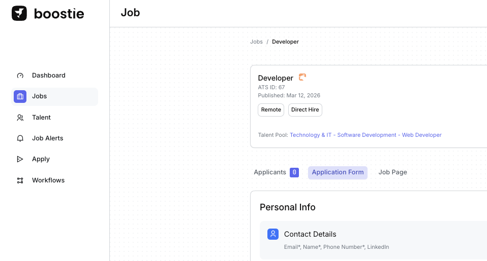 Inside the job, click the Application Form tab.