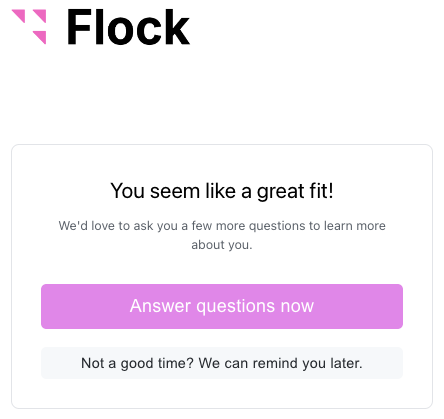 If now isn't a good time, applicants can opt to be reminded later. Boostie will send them an email with a link to complete the screener at their convenience.