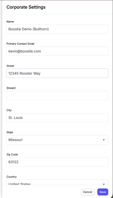 - In Company Settings, begin by entering your basic corporate information.