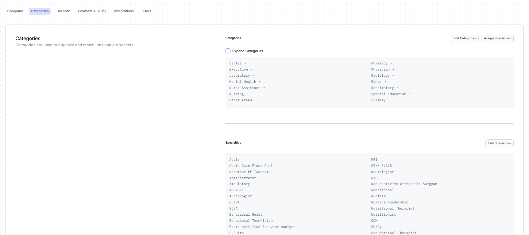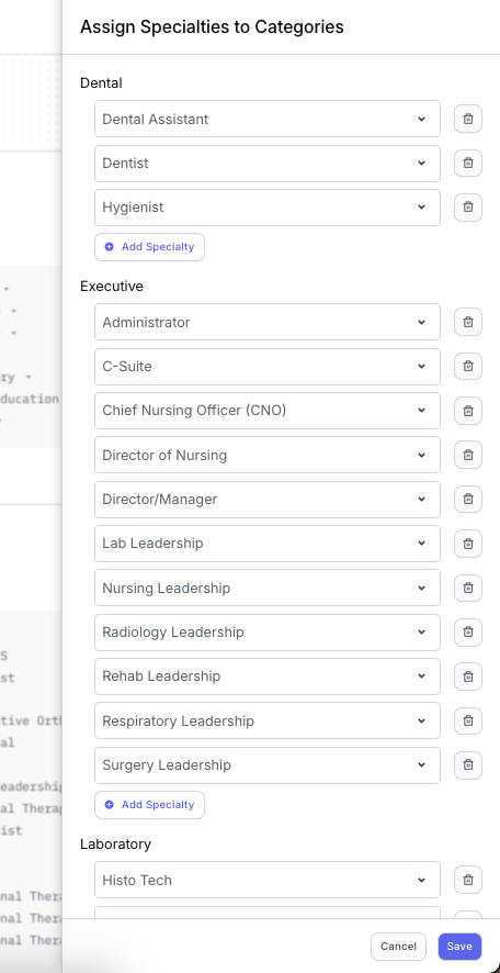- Build or adjust your specialty structure to better reflect your hiring areas.