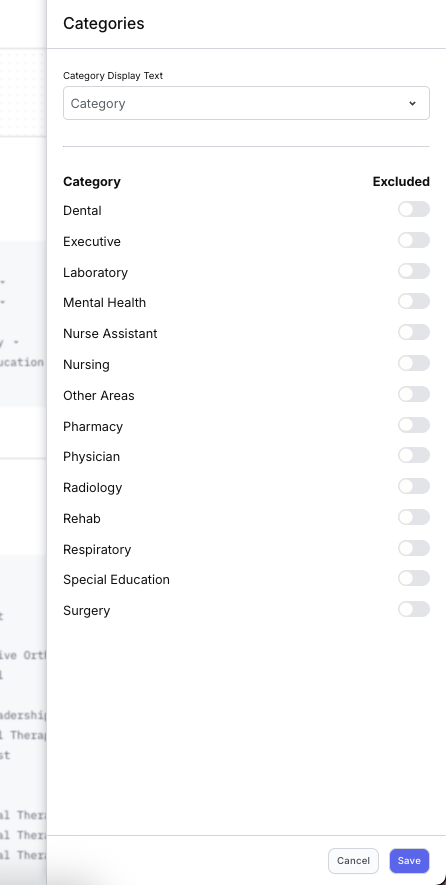 When you click Edit Categories, a slide-out opens that displays all available categories.