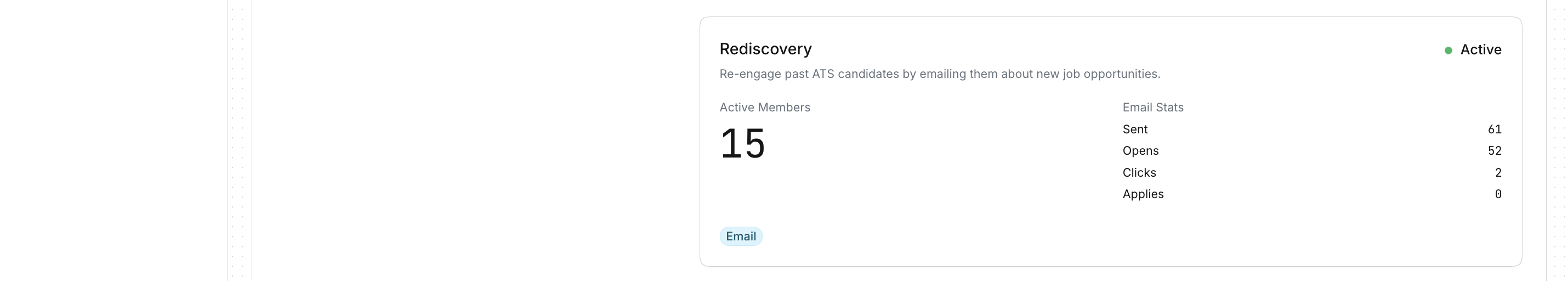 Re-activating your ATS database: Bring past candidates back into the funnel with Rediscovery campaigns tied to real openings.