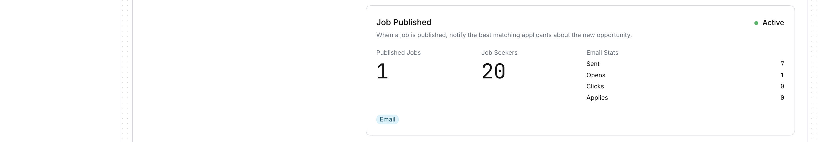Automatically controls send volume so each job emails 10–100 job seekers (based on eligible job seekers ÷ published jobs)