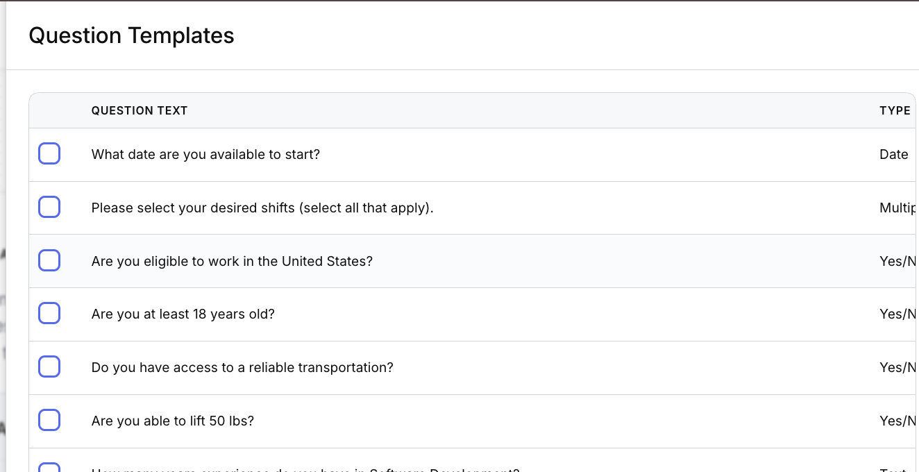 Question type (Yes/No, Date, Multi-Select, etc.)