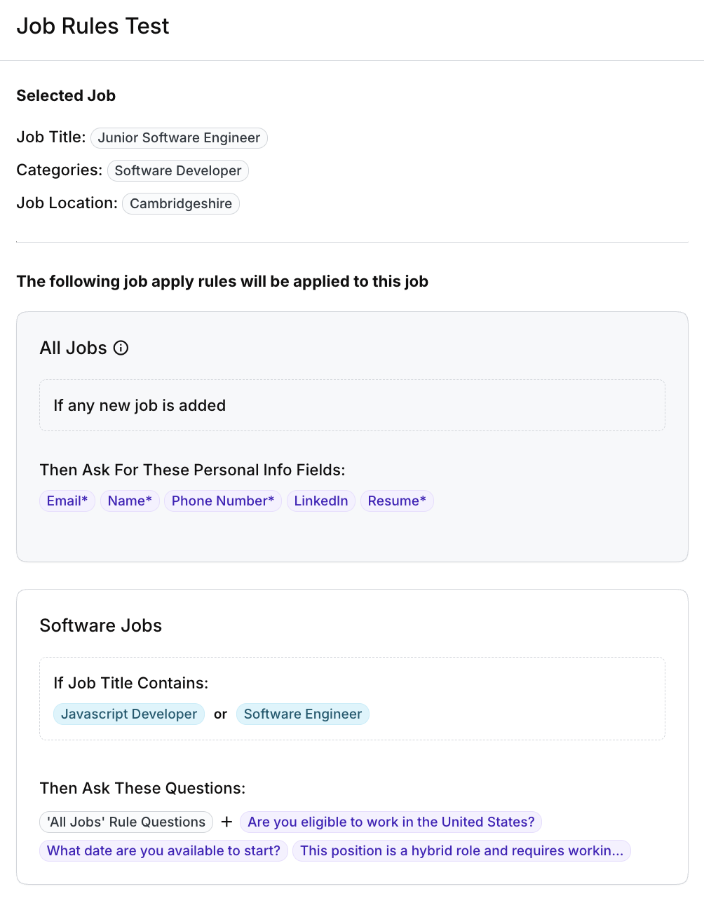 As you build your Job Apply Rule, Boostie makes it easy to refine your setup before saving.
