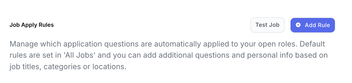 Add Rule is where you create targeted application logic for specific job types using Boostie’s “If this, then that” approach. These rules layer on top of the default All Jobs rule to ensure candidates only see questions and fields that are relevant to the role they’re applying for.