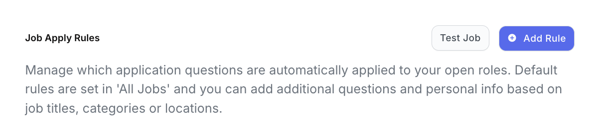 Boostie automatically creates an All Jobs rule during onboarding. This rule cannot be deleted and acts as the foundation for every application. In this section, you’ll focus on adding additional rules for specific job categories, titles, locations, or work types - and then return to refine All Jobs if needed.