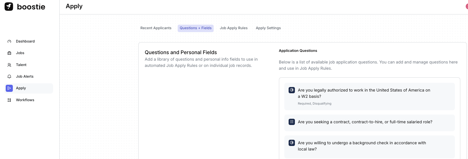 This allows Boostie to automatically route or filter applicants based on responses.