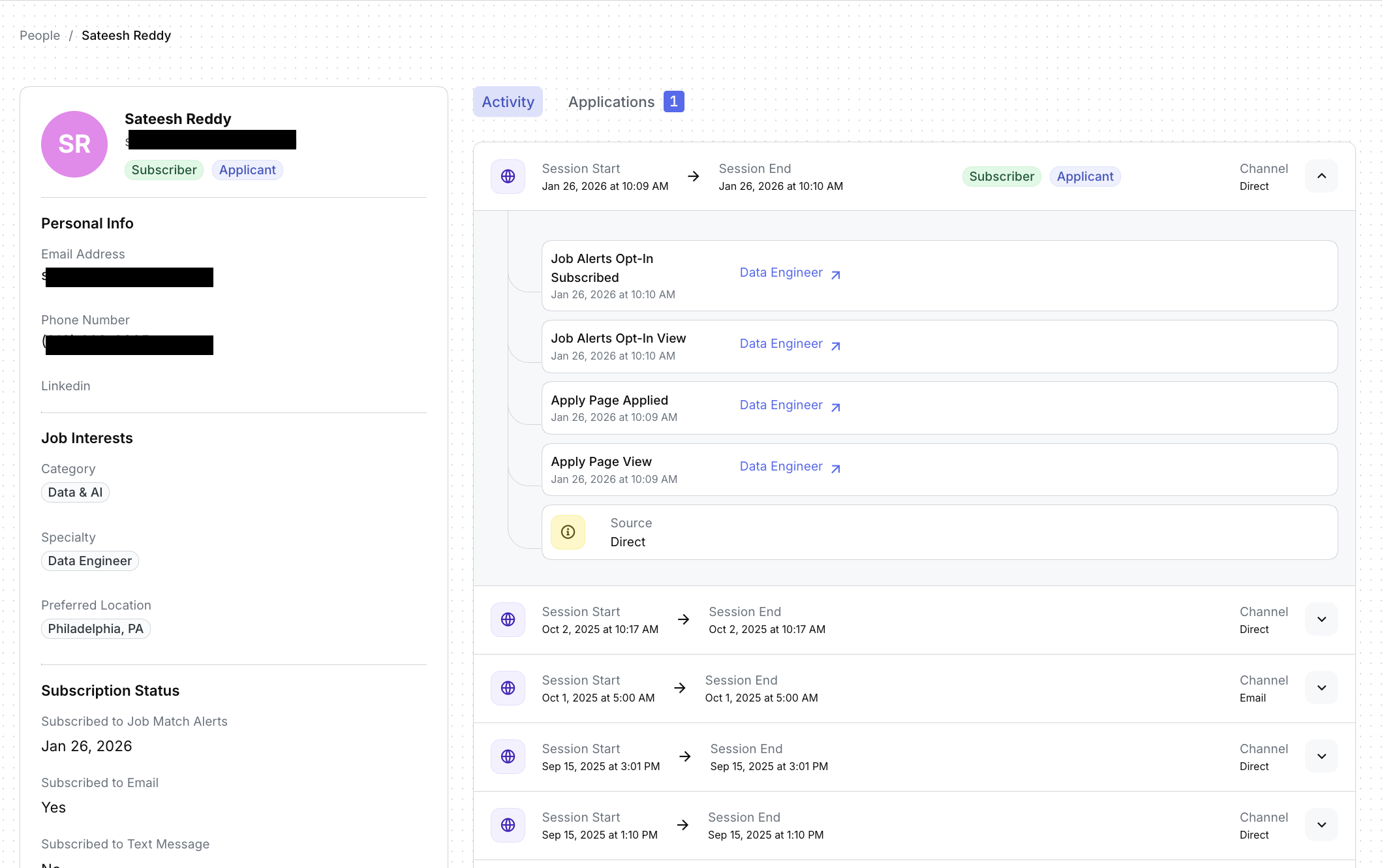 Once a visitor applies for a job or completes a job alerts action (name, email, phone, etc.), Boostie automatically resolves that anonymous activity into a known Person record.