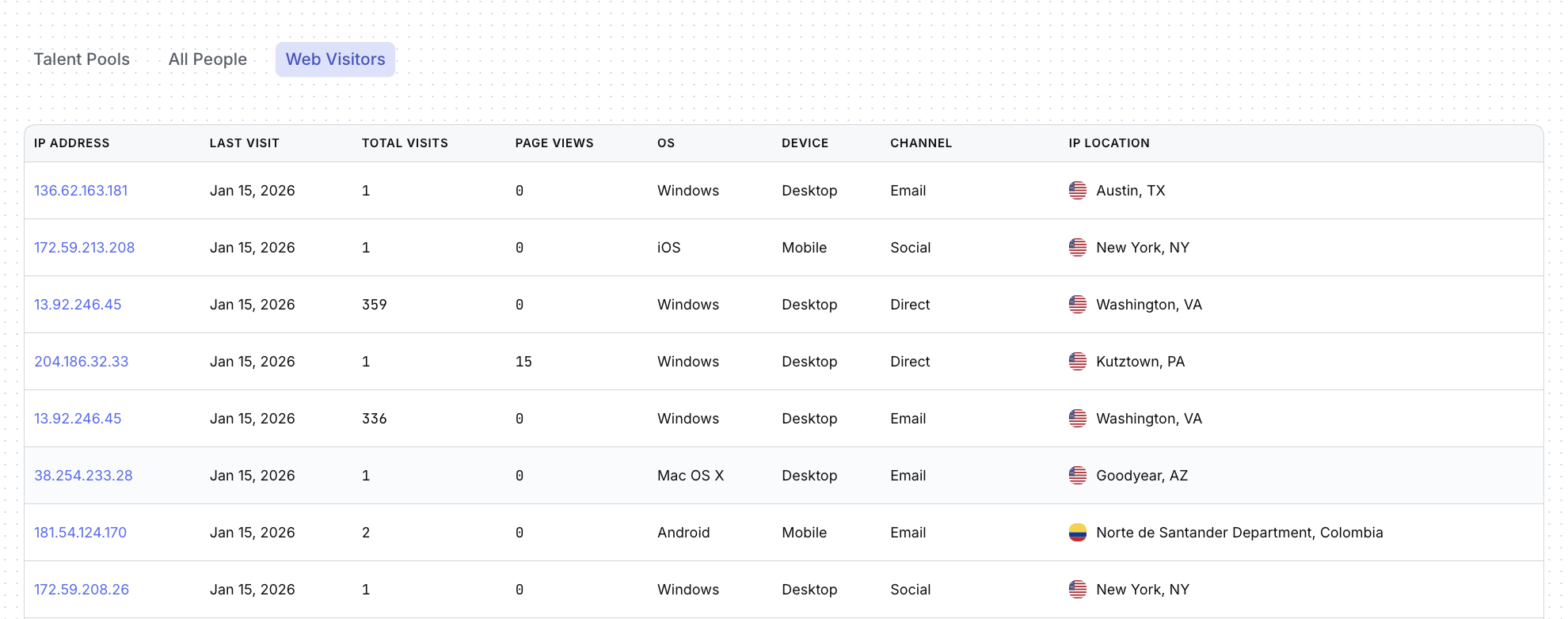 The Web Visitors section gives you visibility into who’s showing up on your career site - even before they raise their hand.
